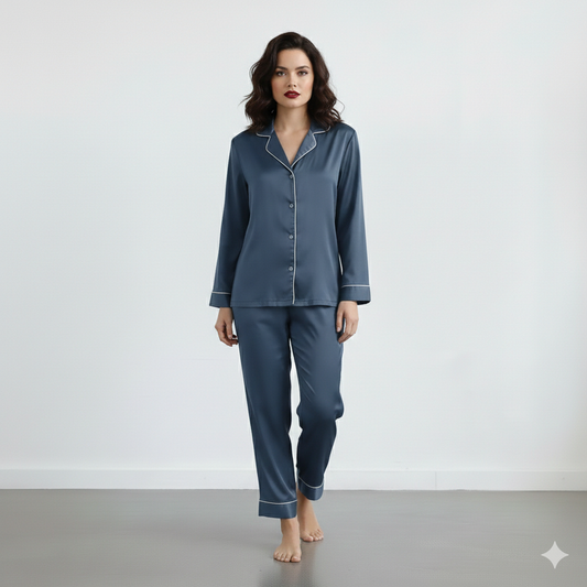 SILK TOP & PAJAMA SET - NAVYBLUE