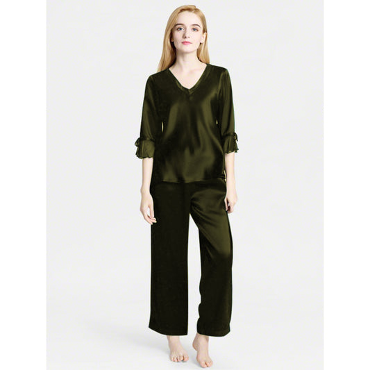 SILK TOP & PAJAMA SET - OLIVE