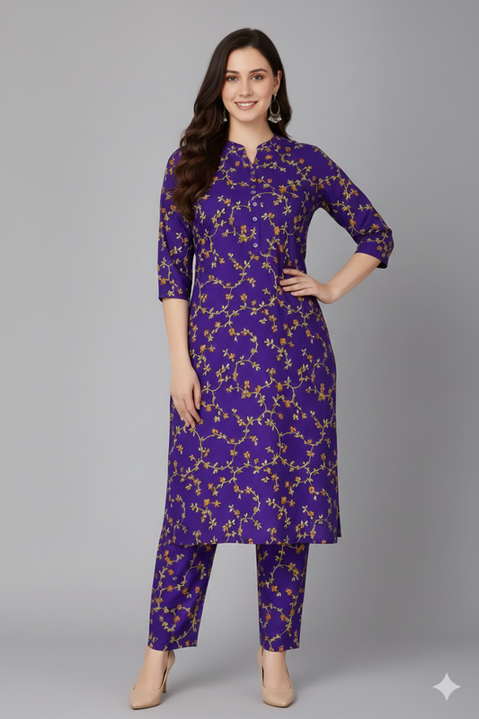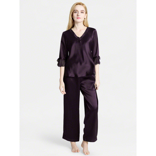 SILK TOP & PAJAMA SET - PURPLE