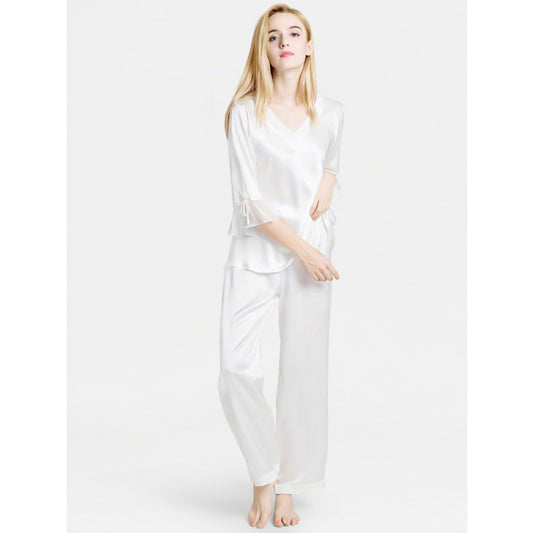 SILK TOP & PAJAMA SET - WHITE