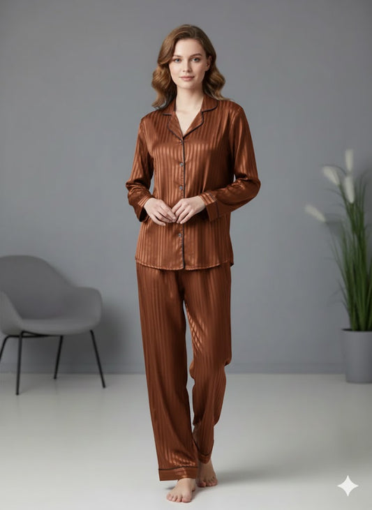 Sold outSILK TOP & PAJAMA SET - LIGHT COFFEE