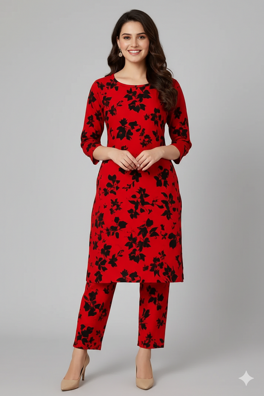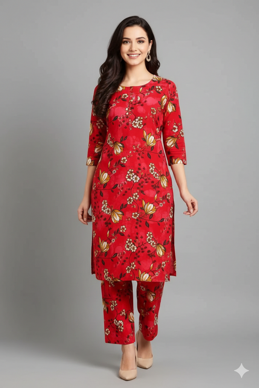 SILK TOP & PAJAMA SET - RED