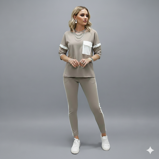 Sold outBIEGE WITH WHITE STRIPE TRACKSUIT