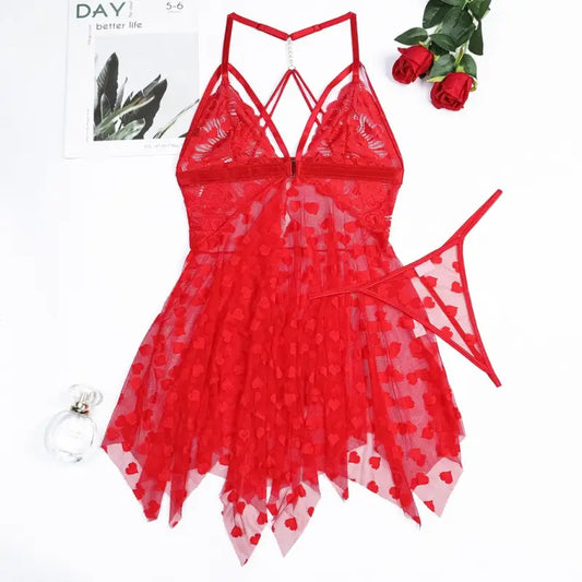 Red Heart Lace Babydoll NC113500-2