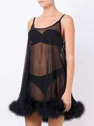 Sheer Mesh Fur Trim Babydoll Dress NC121000-5