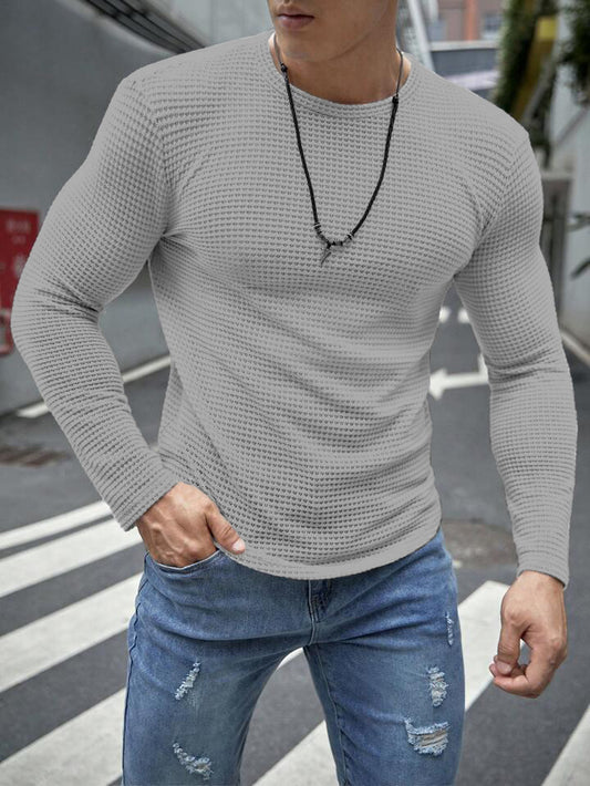 FULL SLEEVES WAFFLE KNIT TEE - GREY