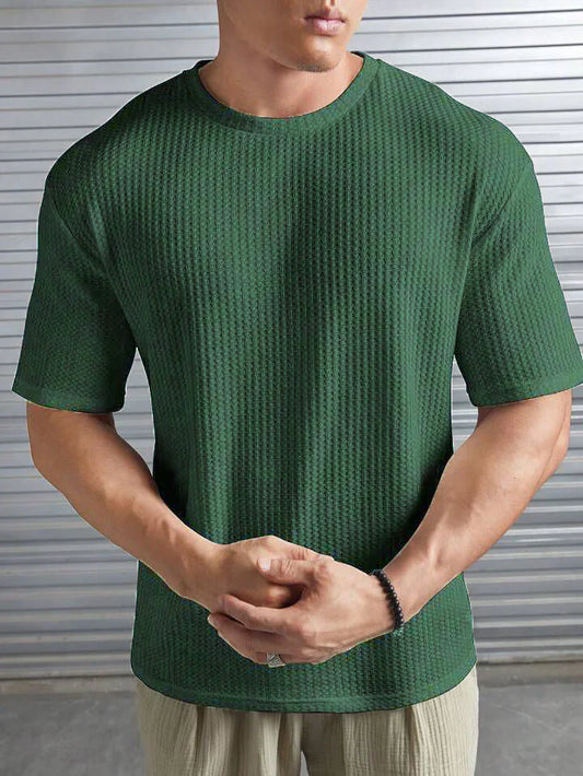 OVER-SIZED WAFFLE KNIT TEE FOR MEN - TURKISH GREEN