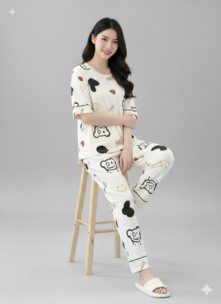 HAPPY DOODLES PRINTED NIGHT SUIT