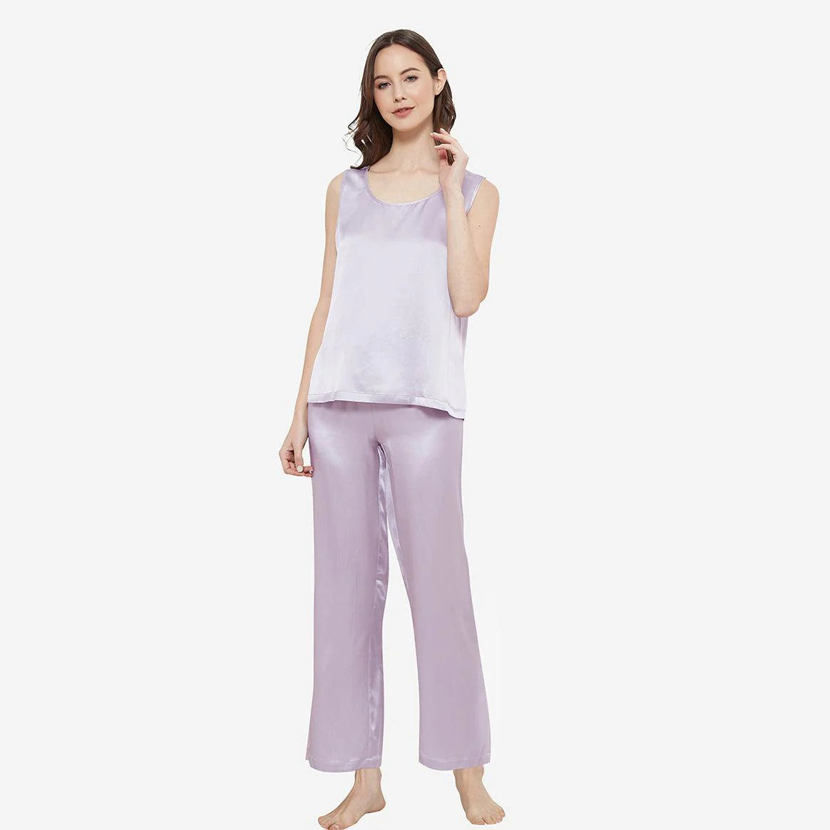 SILK TOP & PAJAMA SET - LAVENDER
