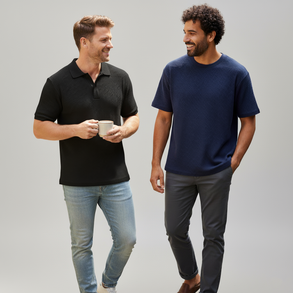 Elevate your casual wear with our Waffle Knitted Polo, crafted from soft, breathable fabric featuring a unique waffle knit texture. This stylish polo shirt is perfect for everyday wear, whether you're running errands, meeting with friends, or just lounging around.