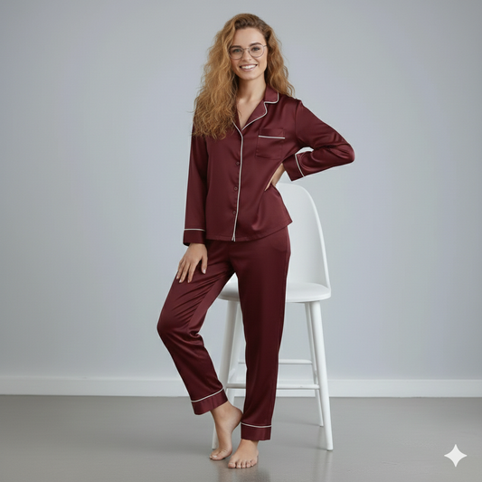 SILK TOP & PAJAMA SET - RED